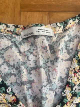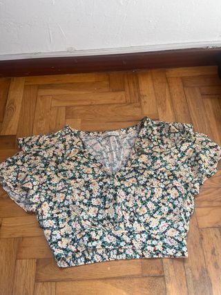 Top floreado perfecto para la temporada primavera/verano. Es muy fresquin. Talla S de Pull&Bear. Tiene una goma por la parte inferior que se ajusta para que sea mas favorecedor, los hombros están decorados con ligeros volantes.