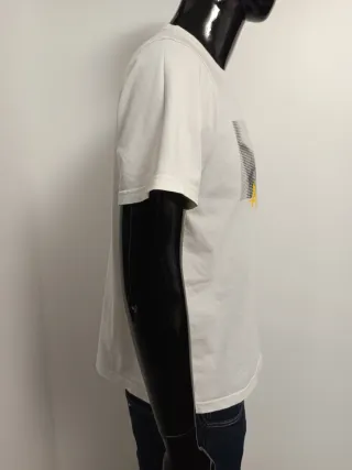 Camiseta STWD blanca con diseño gráfico minimalista en el pecho. Muy fácil de combinar, ideal para look casual o urbano. ✔ Marca: STWD ✔ Talla: L ✔ Estado: muy buen estado ✔ Material: algodón 📦 Envío o entrega en mano en Oviedo. Precio negociable para cerrar rápido.