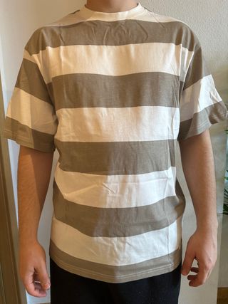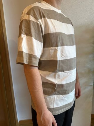 Camiseta para hombre de pull and bear a rayas marrones y blancas. Talla S nuevo con etiqueta.