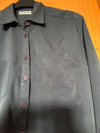 Blusa de manga larga gris con botones. - Cuello camisero. - Bolsillos en la parte delantera. - Botones a tono. - Poco uso, terminaciones en perfecto estado. - Algunas zonas está más brillante por efecto del calor de la alisadora de vapor, se nota poco, pero se puede apreciar en la foto.