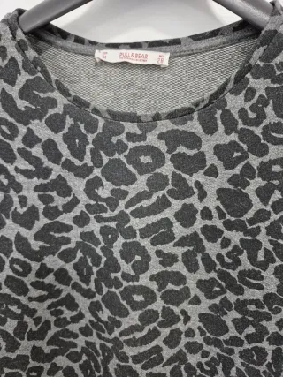 Camiseta de Pull and Bear con un llamativo estampado de leopardo. - Manga larga. - Cuello redondo. - Bajo curvo.