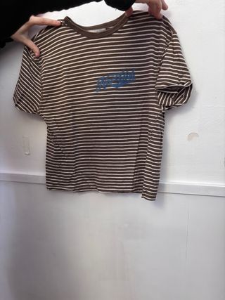 Camiseta de Pull&Bear con un diseño de rayas clásico. El estampado frontal añade un toque distintivo. - Diseño de rayas horizontales. - Estampado gráfico en la parte delantera.