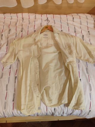 ¡Ideal para el verano! Camisa de lino muy ligera y fresca. Vendo esta camisa de manga corta de la marca Pull&Bear. Tiene un tejido que contiene lino, lo que la hace muy transpirable y cómoda para días calurosos o looks playeros. Marca: Pull&Bear. Color: Crema / Amarilla muy claro (vainilla). Talla: S Detalles: Bolsillo frontal en el pecho y cuello clásico. Estado: En buen estado, perfecta para un look casual 💰 Precio negociable. Estoy abierto a ofertas, ¡no dudes en preguntarme!