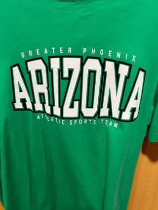 ¡Luce un estilo único con esta increíble camiseta de Arizona Athletics! 👕 Esta camiseta premium presenta un diseño vintage muy especial con el mapa y el nombre de "GREATER PHOENIX" en la parte delantera, y el detalle de "ARIZONA" junto al logotipo de un equipo deportivo retro. Es ideal para los amantes del deporte, el estilo urbano y las prendas con historia. ✅ Características: Material de alta calidad, suave y cómodo. Diseño exclusivo y llamativo. Talla S (Small), corte clásico. Perfecta para el día a día, salir, hacer deporte o coleccionar. En buen estado, lista para lucir. 🏆 Ideal para fans de los equipos de Arizona, co