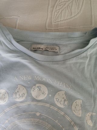 Camiseta de manga corta con un diseño celestial. - Estampado de fases lunares y elementos astronómicos. - Cuello redondo. Y camiseta beis 5€ cada una