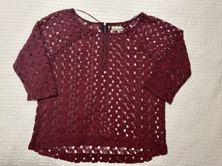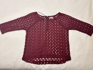 se vende blusa de encaje de manga 3/4 talla S de pull and bear. tiene detalle de cremallera en la parte trasera. es un color burgundy/granate