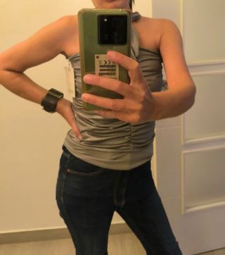 Top Pull&Bear plateado y tienda local
