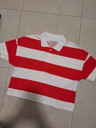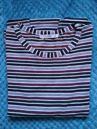 Es una camiseta de rayas de pull and bear, en la talla M, en perfecto estado.