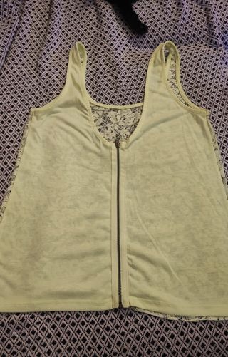 Camiseta de tirantes,de encaje por un lado y lisa con cremallera por el otro,a pesar de la etiqueta puedes usarla en ambos sentidos, según el efecto que desees.