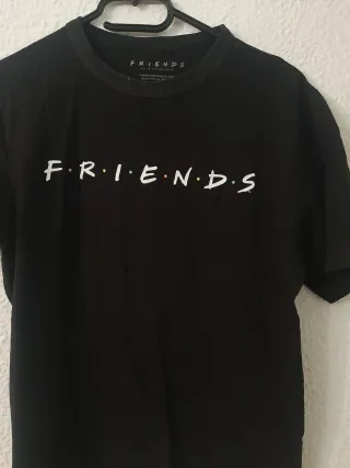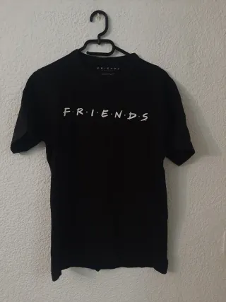 Camiseta negra con el logo de la serie Friends. Talla S, de pull and bear, en buen estado. - Estampado blanco del logo. - Cuello redondo.