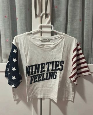Camiseta corta con un diseño llamativo. - Mangas con estampado de estrellas y rayas. - Estampado frontal Nineties Feeling.