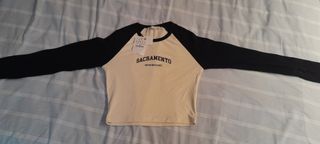 Camiseta un poco corta de manga larga de Pull and Bear. Tela fina pero muy buena, no se lasa frío.