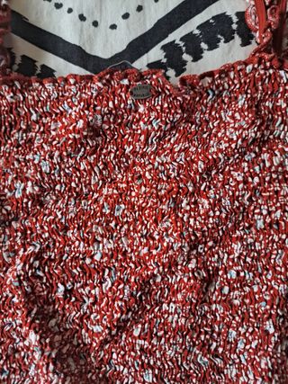 no se ha usado mucho, está bien conservada estampado mariquitas negras la tela es finita y muy agradable transparenta un poco, en la penúltima foto se aprecia talla: S medida de sisa a sisa: 46cm medida de hombro a hombro: 36 cm largo: 60 cm