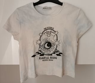 Top de manga corta de Pull & Bear. Color azul cielo estilo tye dye con estampado. Talla M aunque talla un poco pequeña, la tela es un poco elástica. En buen estado.