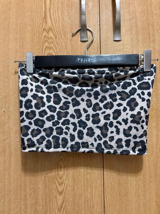 Top de Pull&Bear con estampado de leopardo. S - Diseño sin tirantes. - Tejido elástico y cómodo. ancho 30cm #mujer #invierno #liquidacion #barato #segundamano #buenestado #ropa