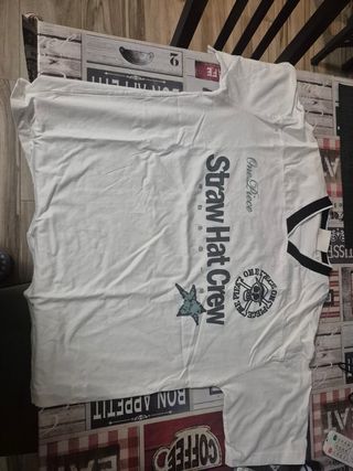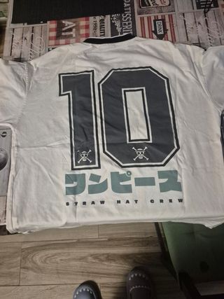 Camiseta blanca de Pull&Bear con diseño de One Piece. - Estampado Straw Hat Crew en la parte delantera. - Logo de One Piece y One Piece en el pecho. - Detalle de estrella en la parte delantera.