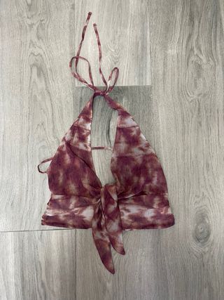 Top anudado con estampado tie-dye. - Diseño halter. - Cierre con lazada. - Tejido ligero.
