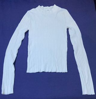 Blusa de manga larga con cuello alto y tejido acanalado. - Diseño ajustado. - Cuello con acabado festoneado. - Bajo con acabado festoneado.