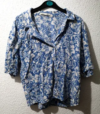 Camisa de Pull&Bear con un estampado floral. Perfecta para un look casual y veraniego. - Diseño con flores azules y detalles en blanco. - Cuello camisero. - Manga corta. - Cierre de botones.