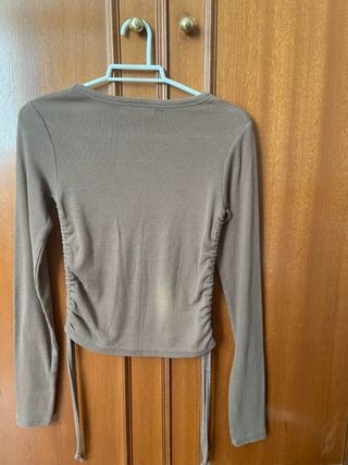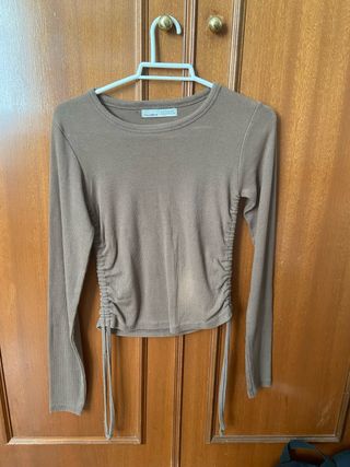 Pull&Bear Camiseta Marrón Manga Larga Fruncida