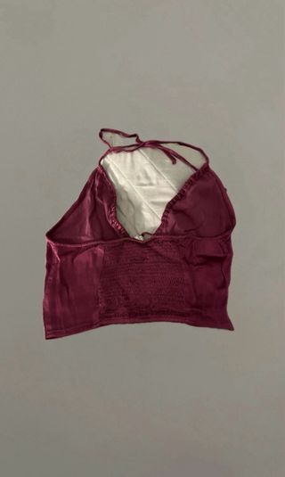 Top de tirantes con un diseño moderno y favorecedor. - Tejido satinado. - Detalle fruncido en el escote. - Ajuste con tiras en el cuello.