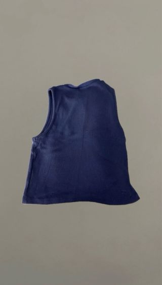 Top de tejido acanalado con un diseño moderno y atrevido. - Escote redondo con abertura. - Sin mangas. - Corte cropped.