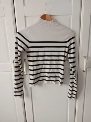 Jersey de cuello alto con un diseño de rayas clásico. - Talla S/M. - Manga larga.