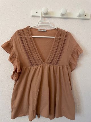 Blusa manga corta con detalles lenceros.
