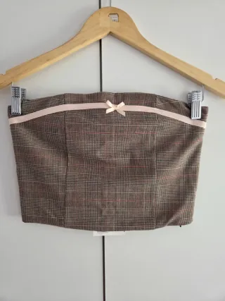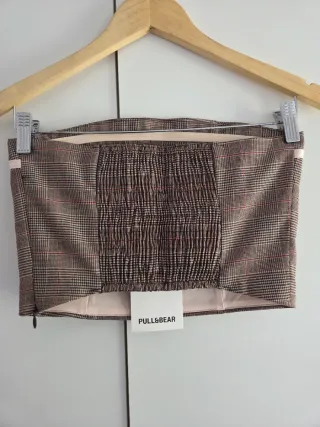 Top sin tirantes de la marca Pull&Bear, perfecto para verano 🌞⛱️ - Color gris. - Talla S. - Cremallera en un lateral