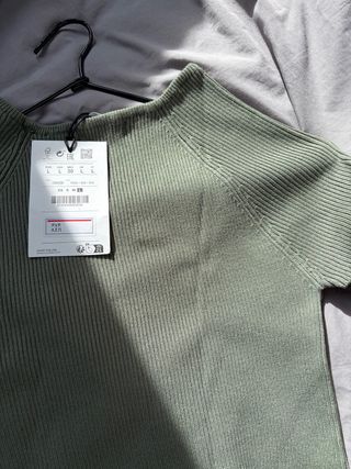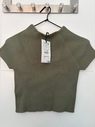 Camiseta o top de Pull&Bear en color verde. Diseño de canalé. - Manga corta. - Cuello redondo. - Tejido elástico.