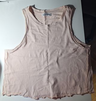Camiseta sin mangas de color rosa, con un diseño moderno y cómodo. Estilo corta Talla M Pull and Bear - Corte holgado. - Acabado deshilachado en el bajo y las sisas. - Cuello redondo.