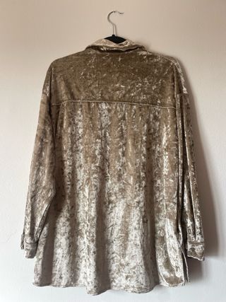 Camisa de terciopelo con un acabado brillante y suave. Su diseño es elegante y versátil. - Material: Terciopelo. - Color: plateado. - Talla: S excelente estado