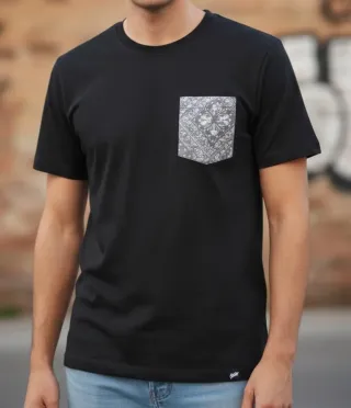 Camiseta de manga corta con un diseño moderno. Talla M. - Bolsillo frontal con estampado. - Cuello redondo.