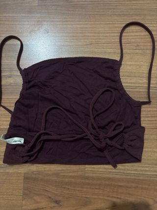 Top de tirantes en color granate. Diseño con espalda abierta atado por detras. - Tirantes finos. - Bajo ancho.