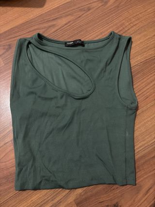 Pull&Bear Top Asimétrico Verde Talla M