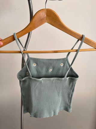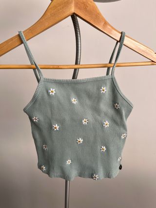 Top de tirantes con un bonito estampado de flores. - Diseño acanalado. - Tirantes finos. Es talla M pero sirve también como talla S y XS (es muy pequeño pero estira)