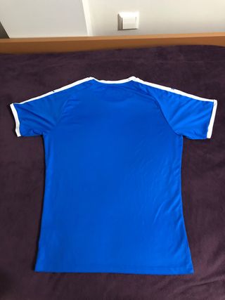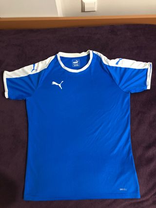 Camiseta de la marca Puma de color azul y blanco. Talla S. En buen estado. Tiene una tela DryCell que es repelente de humedad y sudor.
