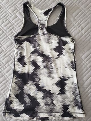 Todas talla XS y muy poco usadas. La blanca marca Boomerang, escote alto, largo medio y ajustada, rejilla zona alta de la espalda. Las otras dos marca Puma, con forro ajustado zona del pecho, escote redondo y media altura, larga y ajustada. Las tres en tejido elástico.