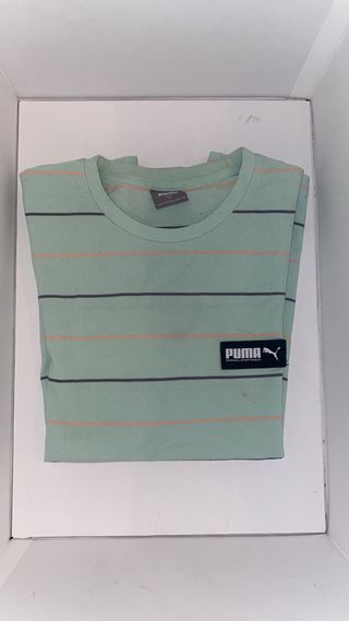 camiseta de rayas de la marca Puma. Es de color verde claro y tall m