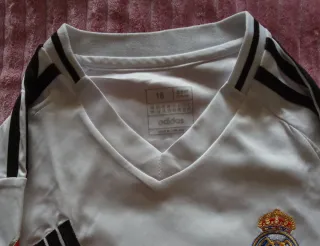 Camiseta de fútbol del Real Madrid de la temporada 2005/2006. - Diseño clásico con el nombre y número de Cristiano Ronaldo. - Detalles de las tres rayas de Adidas en las mangas. - Escudo del club en la parte frontal.