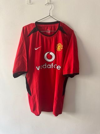 Camiseta de fútbol del Manchester United de la temporada 2003/2004. - Número 7 y nombre 'Ronaldo' en la espalda. - Diseño clásico en color rojo con detalles en negro. - Logo de la Premier League en la manga.
