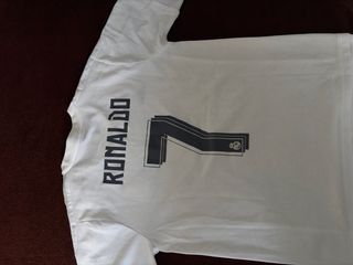 Camiseta deportiva con el número 7 y el nombre de Ronaldo. La talla es 16 años, equivaldríaas o menos a la S de hombre. Mirar medidas en las fotos. - Diseño deportivo. - Detalles en azul y blanco. Como nueva
