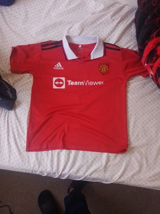 Camiseta oficial del Manchester United con el dorsal de Cristiano Ronaldo. - Diseño clásico en color rojo. - Logo de Adidas y escudo del club. - Patrocinador TeamViewer.