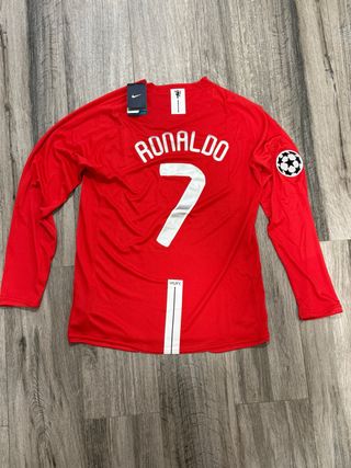 Camiseta roja de manga larga de fútbol del Manchester United de la temporada 2008, con el dorsal 7 de Cristiano Ronaldo. - no negociable - Diseño de manga larga. - Detalles del club y de la Champions League. - Logo de Nike.