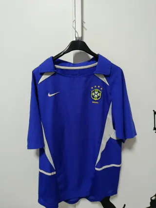 Camiseta de la selección de Brasil 2002 -Talla s, buen estado general - Diseño con detalles en blanco y malla. - Escudo de la CBF y logo de Nike.