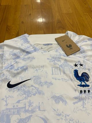 Camiseta de fútbol de la selección de Francia, con un diseño único. - Estampado estilo toile en blanco y azul. - Logo de Nike bordado. - Escudo de la FFF con dos estrellas.