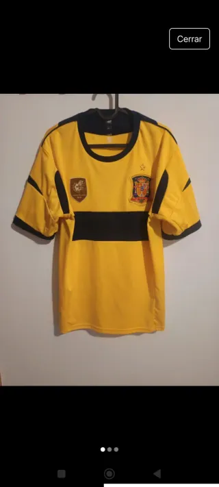 Camiseta de la selección española de fútbol. - Diseño con detalles en amarillo y azul. - Escudo de España bordado en el pecho. - Cuello en V.