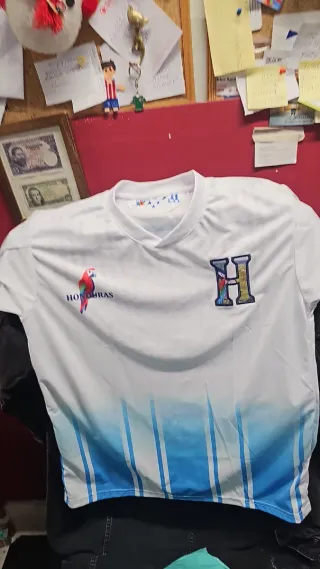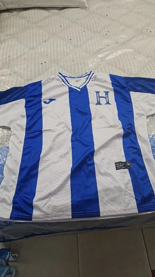 Camiseta de la selección de Honduras con el diseño clásico de rayas verticales. - Logo de Joma en el pecho. - Escudo de Honduras en la parte frontal. - Diseño oficial.