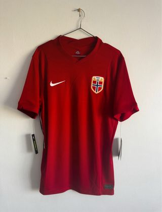 Camiseta original de la selección de Noruega nueva con etiquetas. - Diseño oficial de Nike. - Escudo de Noruega en el pecho. - Logo de Nike en el pecho.