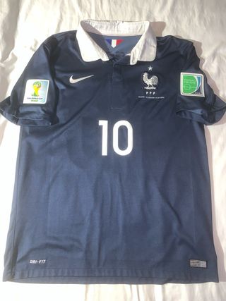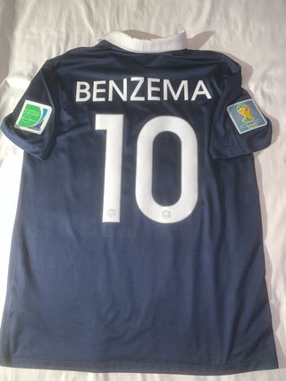 Camiseta de fútbol de la selección francesa con el dorsal 10 de Karim Benzema. - Diseño oficial de Adidas. - Parche de la Copa Mundial de la FIFA Brasil 2014. - Insignia Football for Hope en la manga izquierda.